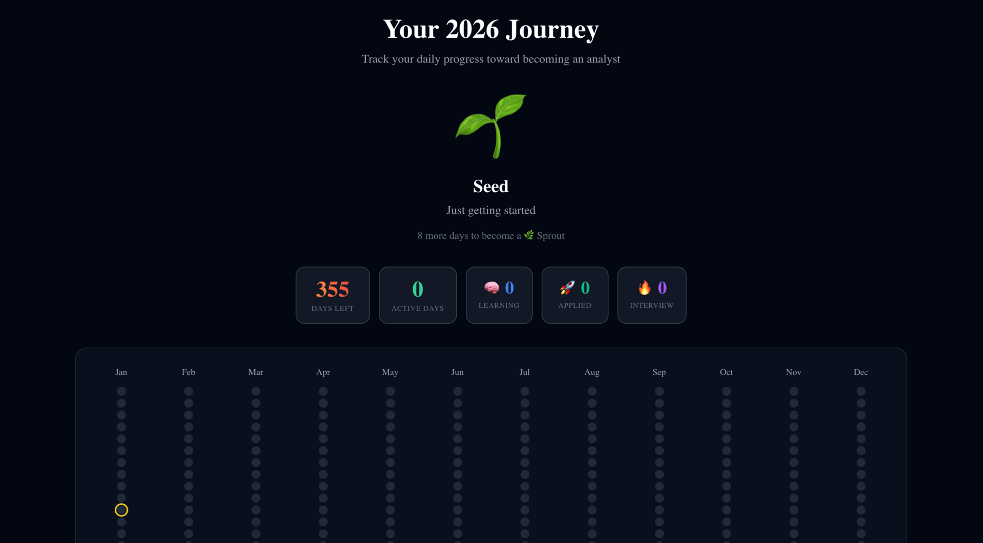 I wanted a way to track my own prep; learning, applying, interviewing without it feeling like a chore. Something visual that rewarded showing up. I ended up building a simple tracker for 2026, and I figured I'd share it: